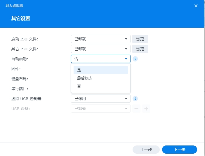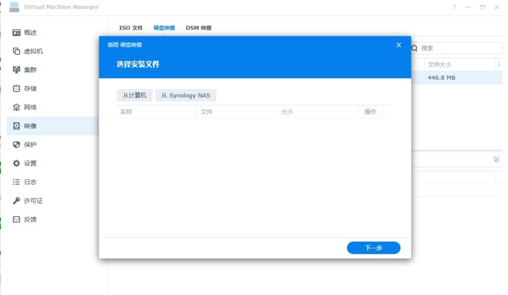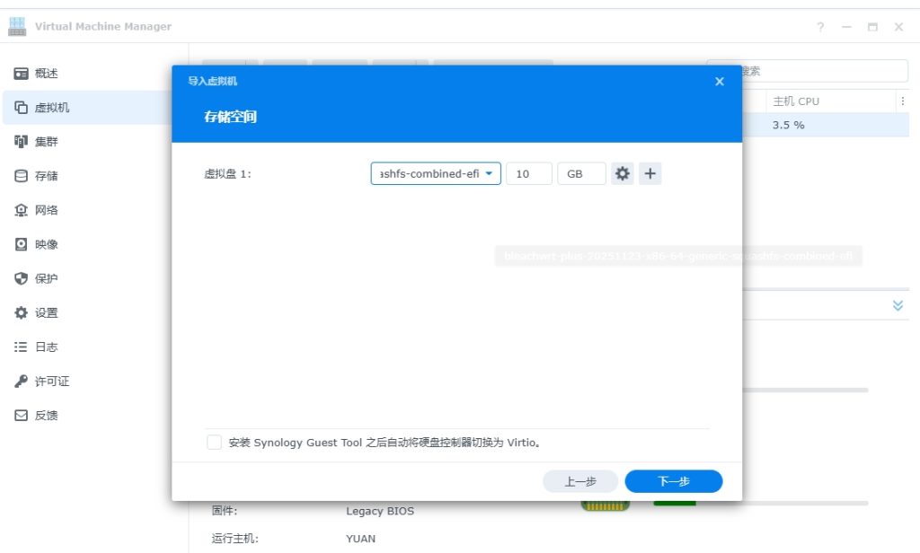 一路点击下一步,直到来到存储空间选项,选择虚拟盘1为刚才在映像中生成的文件